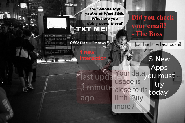 Thanks, Joseph! We’re all victims of this drama, even if we aren’t the ones constantly checking-in. Car accidents, less productivity, etc., all from texting or being distracted affects us all. We must learn to compartmentalize and lessen the importance of constant connectivity in our lives.